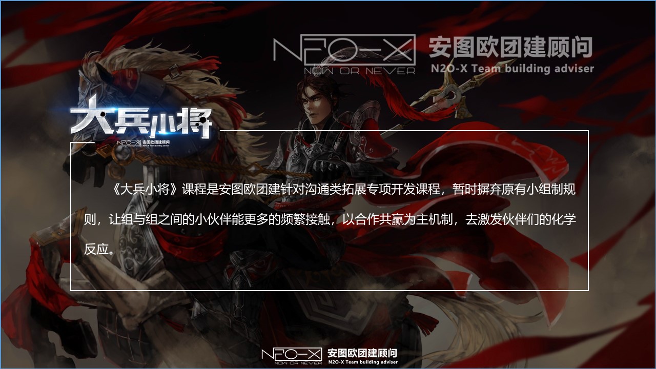 《大兵小將》課程是安圖歐團建針對溝通類拓展專項開發(fā)課程,暫時摒棄原有小組制規(guī)則,讓組與組之間的小伙伴能更多的頻繁接觸,以合作共贏為主機制,去激發(fā)伙伴們的化學反應。