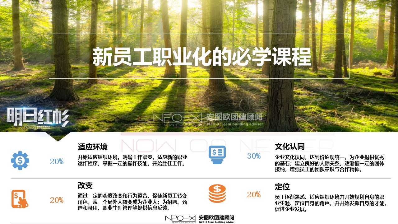 針對企業(yè)新員工設(shè)計(jì),根據(jù)新人經(jīng)驗(yàn)缺乏、心態(tài)不穩(wěn)、職業(yè)素養(yǎng)與理念較缺乏等特征,我們貫穿課程的四大關(guān)鍵詞:“心態(tài)調(diào)整”、“職業(yè)塑造”、“團(tuán)隊(duì)理念” 、“員工融合” ,并以此為基礎(chǔ)為公司新人團(tuán)隊(duì)設(shè)計(jì)該課程。幫助受訓(xùn)者從社會(huì)人到職業(yè)人的轉(zhuǎn)變,從職業(yè)人到企業(yè)人的轉(zhuǎn)化,從企業(yè)人到團(tuán)隊(duì)人的最大轉(zhuǎn)化。