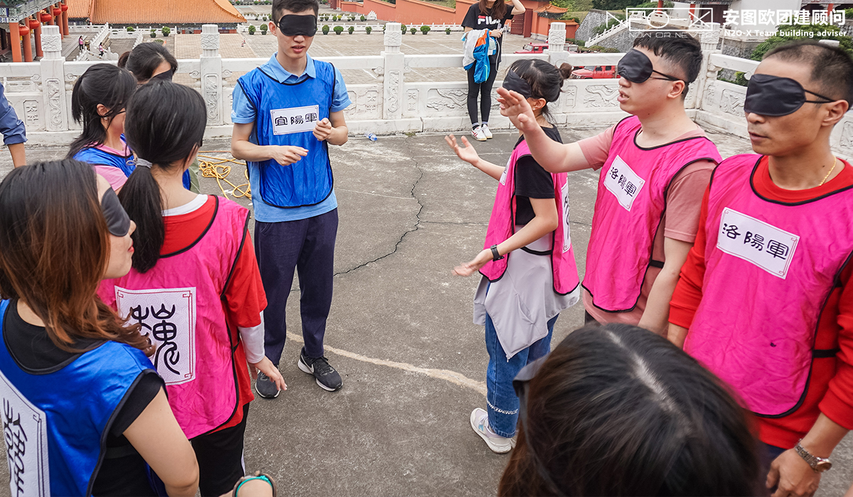 興建阿房宮:參賽隊員在蒙住眼睛的情況下,通過繩子來搭建一個簡易房子。這很考驗參賽隊員的默契和溝通方式,一項智力與勇氣的配合。