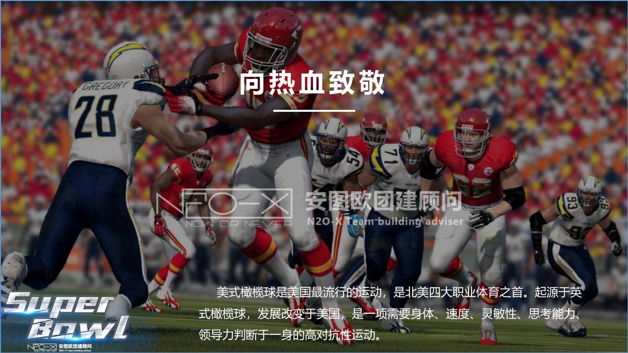 美式橄欖球是美國最流行的運(yùn)動,是北美四大職業(yè)體育之首。起源于英式橄欖球,發(fā)展改變于美國,是一項(xiàng)需要身體、速度、靈敏性、思考能力、領(lǐng)導(dǎo)力判斷于一身的高對抗性運(yùn)動。