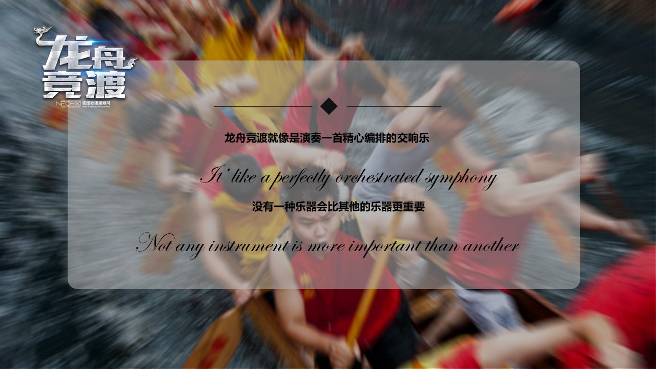 一場酣暢淋漓的龍舟賽的全過程可以影射出一個企業(yè)前進與拼搏的過程。一個成功的企業(yè)需要“掌舵者”及“槳手”的共同努力與合作,進而才能達到共享、共進、共贏的企業(yè)愿景!努力,拼搏,齊心合力,讓我們一起劃動船槳,沖向目標。