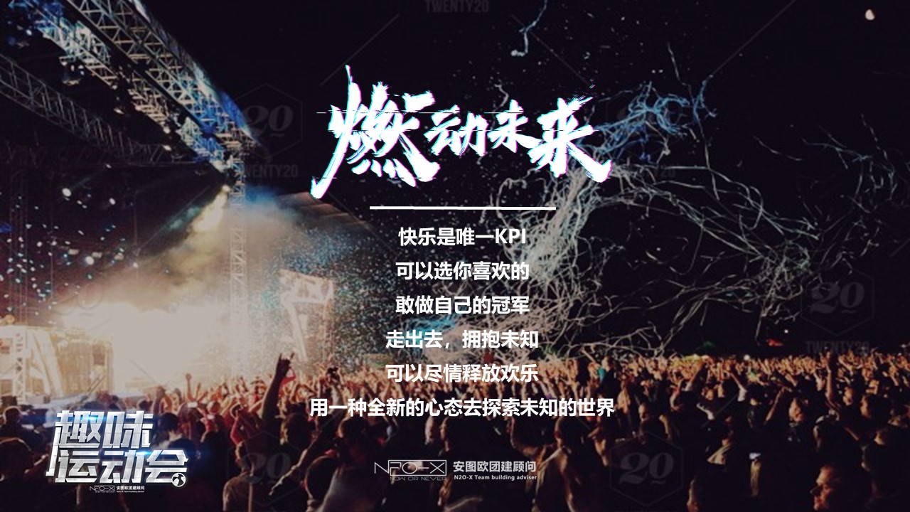 本項目以運動會的方式去點燃青年們的熱情,輸了一起扛,贏了一起狂可能是形容一個團(tuán)隊凝聚力最接地氣的描述;我們在一起的時候去感受年輕,去感受燃力;而當(dāng)下,我們即將圍繞”燃“這個關(guān)鍵詞去造,去鬧騰,去釋放,去擁抱屬于你的團(tuán)隊吧。
