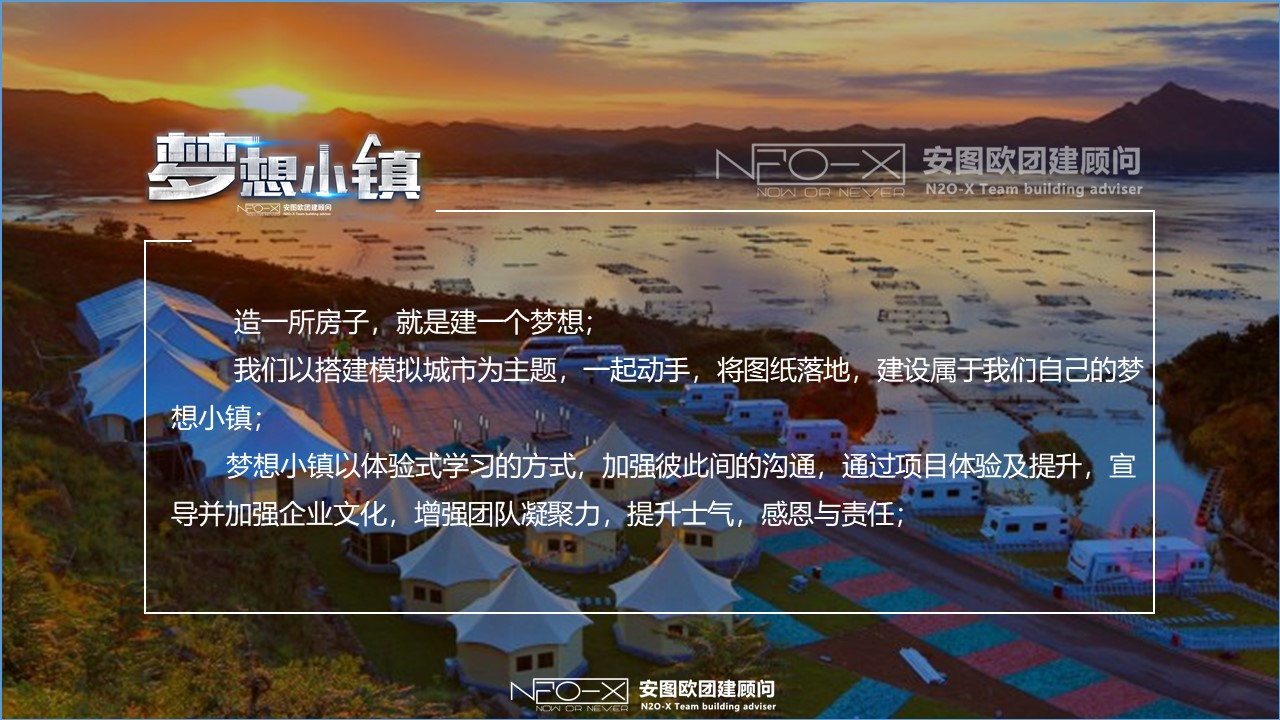 夢(mèng)想小鎮(zhèn)以體驗(yàn)式學(xué)習(xí)的方式,加強(qiáng)彼此間的溝通,通過項(xiàng)目體驗(yàn)及提升,宣導(dǎo)并加強(qiáng)企業(yè)文化,增強(qiáng)團(tuán)隊(duì)凝聚力,提升士氣,感恩與責(zé)任。