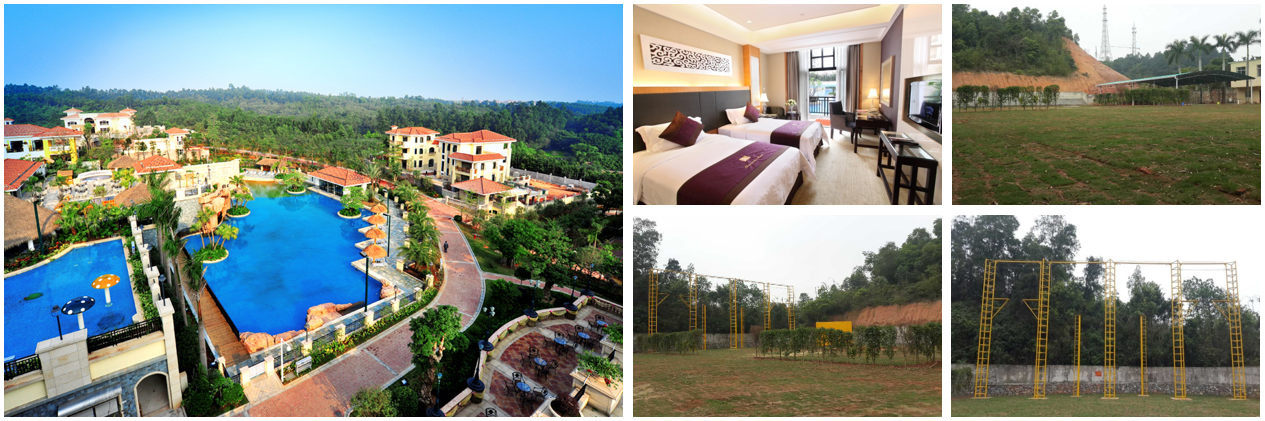 位于綠湖溫泉度假酒店旁,坐落于國(guó)家AAAA風(fēng)景區(qū)三水森林公園內(nèi),鄰近廣三高速出入口,距廣州白云國(guó)際機(jī)場(chǎng)及廣州火車(chē)南站僅需45分鐘車(chē)程,交通十分便利。酒店溫泉沐浴區(qū)共有39個(gè)形態(tài)各異的浸泡池、8間私家溫泉泡池貴賓室,溫泉SPA設(shè)有美食自助餐、健身房、桌球、棋牌室、美容室、露天吧、菲律賓BAND演奏、篝火晚會(huì)等休閑娛樂(lè)設(shè)施一應(yīng)俱全。拓展基地配有完善的拓展設(shè)施,擁有多個(gè)防雨大棚及獨(dú)立培訓(xùn)課室,能同時(shí)滿(mǎn)足500人的訓(xùn)練需求。