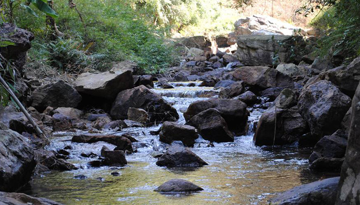 池潭四周青山環(huán)抱,奇石錯(cuò)落,野花簇?fù)?,與周圍景色渾然一體,是炎炎夏日,幽谷索源,暢游溪頭的理想去處。