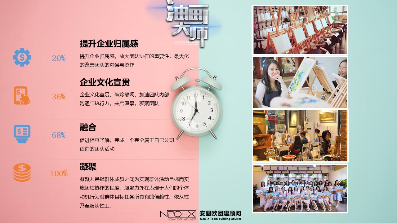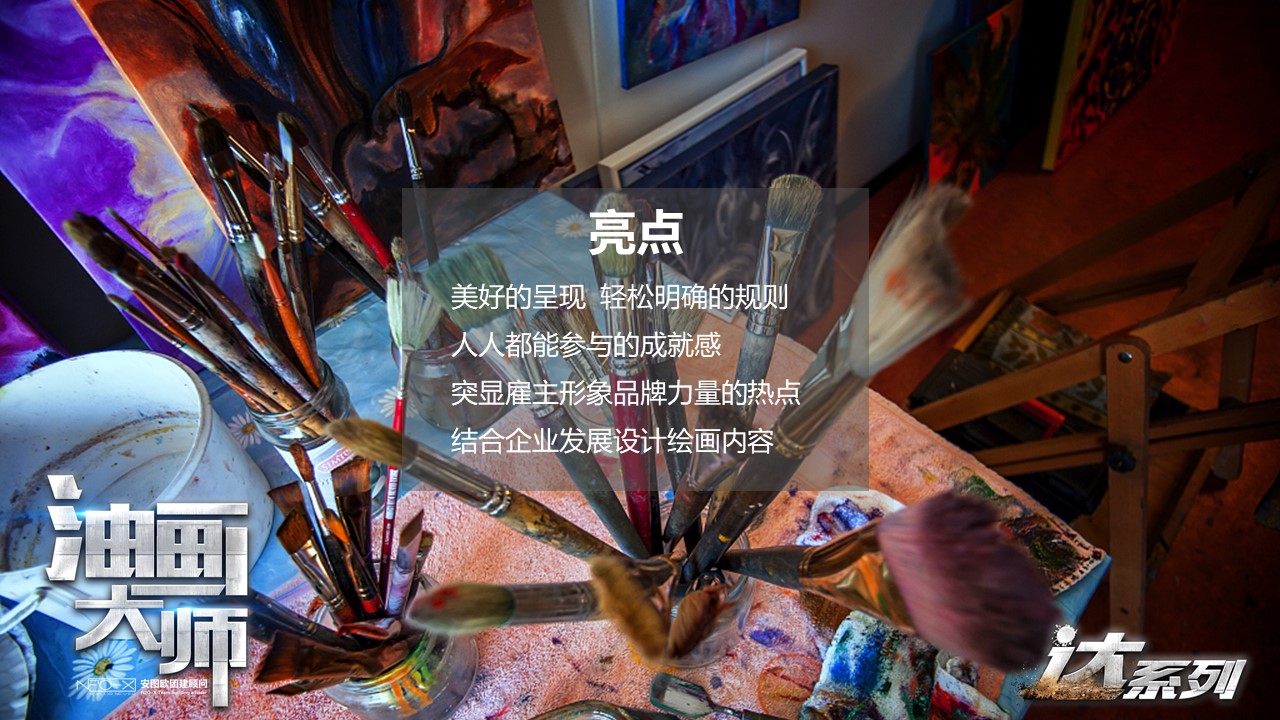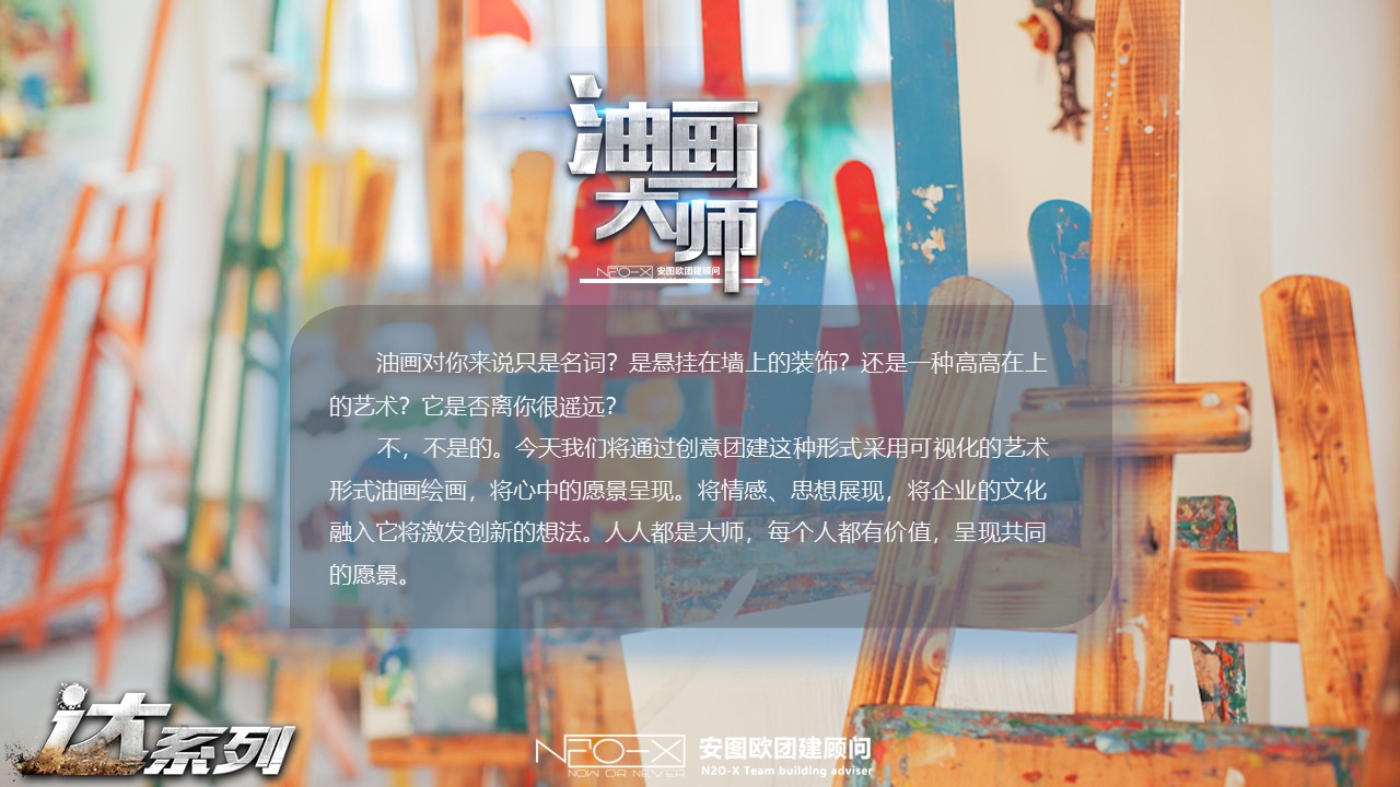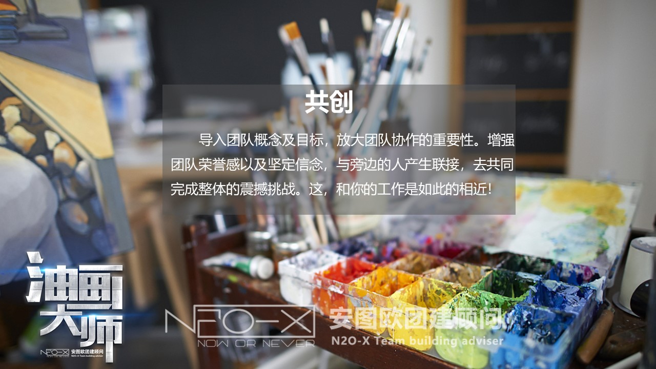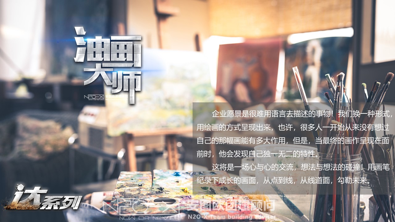 不,不是的。今天我們將通過(guò)創(chuàng)意團(tuán)建這種形式采用可視化的藝術(shù)形式油畫(huà)繪畫(huà),將心中的愿景呈現(xiàn)。將情感、思想展現(xiàn),將企業(yè)的文化融入它將激發(fā)創(chuàng)新的想法。人人都是大師,每個(gè)人都有價(jià)值,呈現(xiàn)共同的愿景。