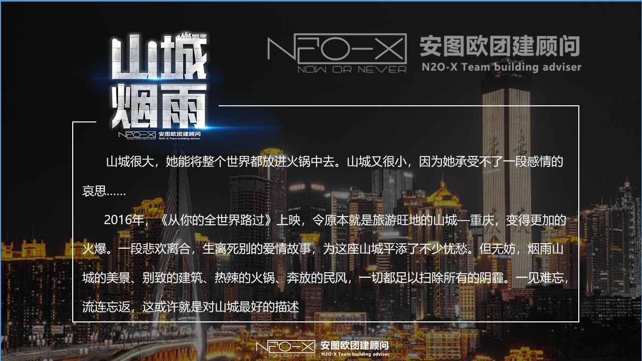2016年,《從你的全世界路過》上映,令原本就是旅游旺地的山城—重慶,變得更加的火爆。一段悲歡離合,生離死別的愛情故事,為這座山城平添了不少憂愁。但無妨,煙雨山城的美景、別致的建筑、熱辣的火鍋、奔放的民風(fēng),一切都足以掃除所有的陰霾。一見難忘,流連忘返,這或許就是對(duì)山城最好的描述
